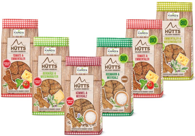 All diese Eigenschaften und Anforderungen führten unser Naming-Projekt zu einem besonderen Snacknamen: HÜTTS. Zum Start umfasst die Hütts-Familie sechs Sorten, drei konventionell, drei in Knusper-Bio-Qualität: